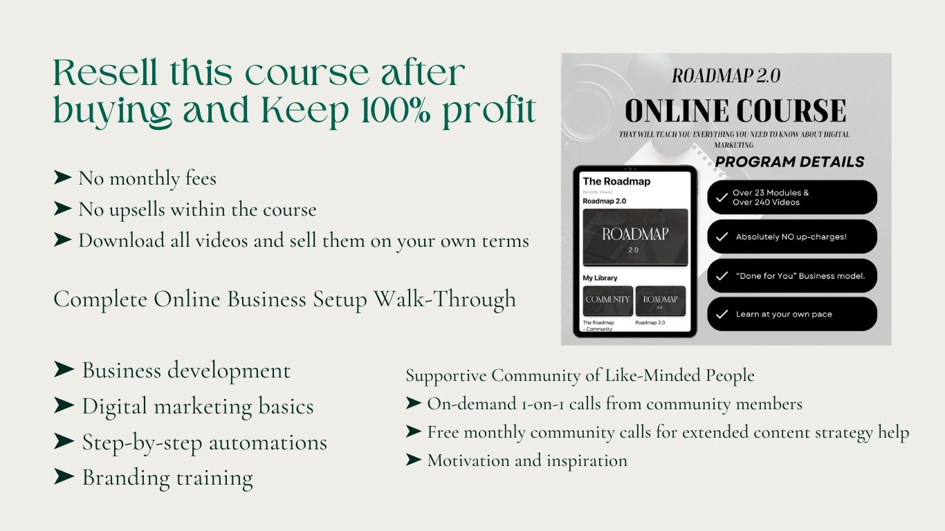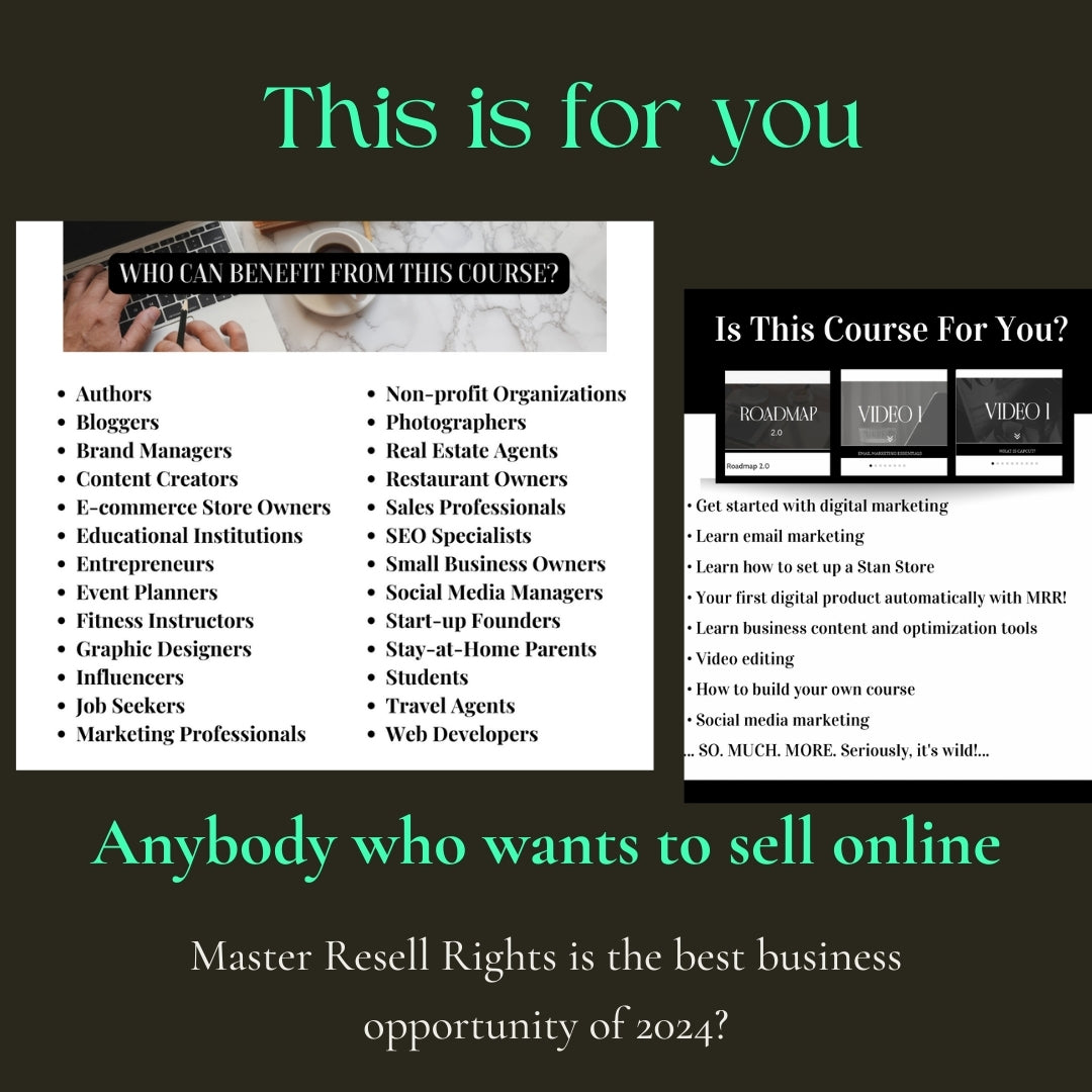 A: Allow me to clarify the concept of Master Resell Rights (MRR): Upon purchasing this course with a single payment, you not only gain entry to the training and benefit from community support but also become the full owner of the course. This ownership empowers you to resell the course yourself, reaping 100% of the profits.